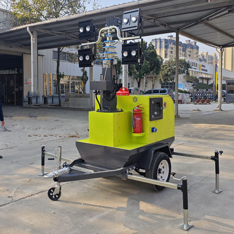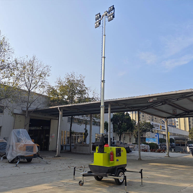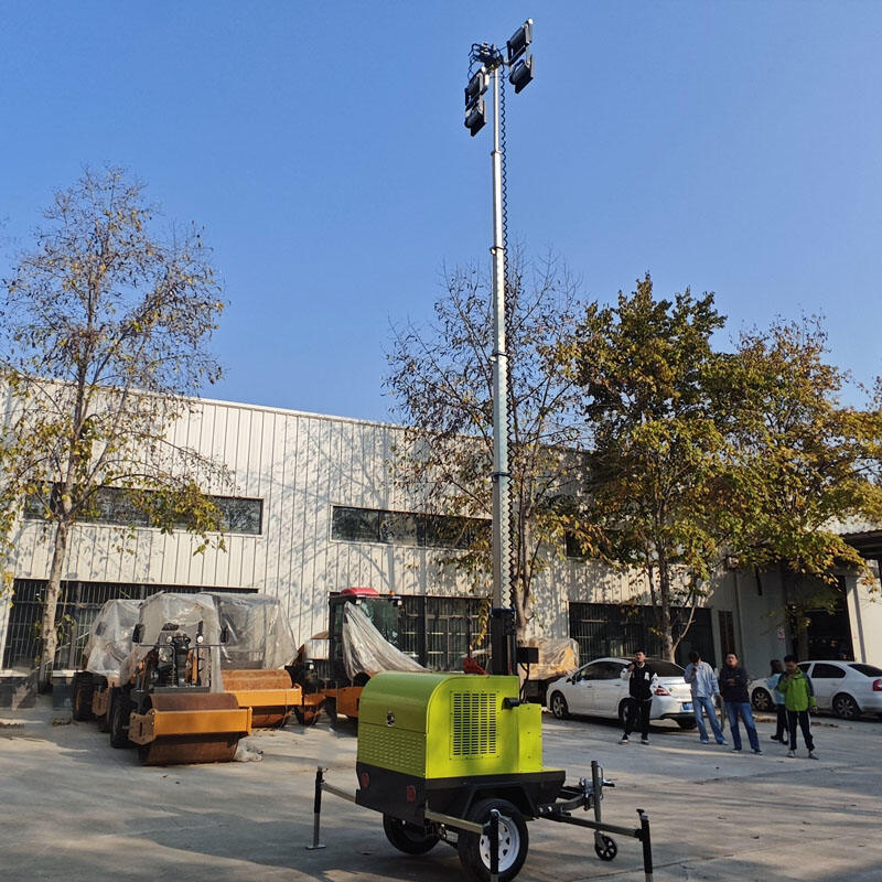 Equipped with a high-strength electric lifting mast reaching 9 meters, providing wide-area illumination for large construction sites.